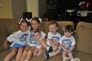 We finished off the fun weekend with a photo shoot on Tuesday morning. A photographer came out to the Bain's house and took amazing pictures of the kids together. Abby fell asleep during the shoot, but the photographer woke her up (EXCUSE ME!) and he did great with her. I was amazed!!!
