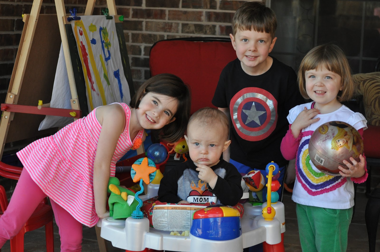 Spring break is HERE and we are loving some cousin time. Liz and her crew came in town this past weekend and left today. We loved having them here despite the gross weather most of the weekend. The sun broke out on Sunday afternoon and we all ran out back to enjoy it and do some grilling. The kids played great together and got along so well. We didn't do much other than just hang out at the house and let the kids play. Hunter was loving trying to chase the big kids around the house. He will be catching them soon. Thanks for coming up to D, Liz. We loved having you!